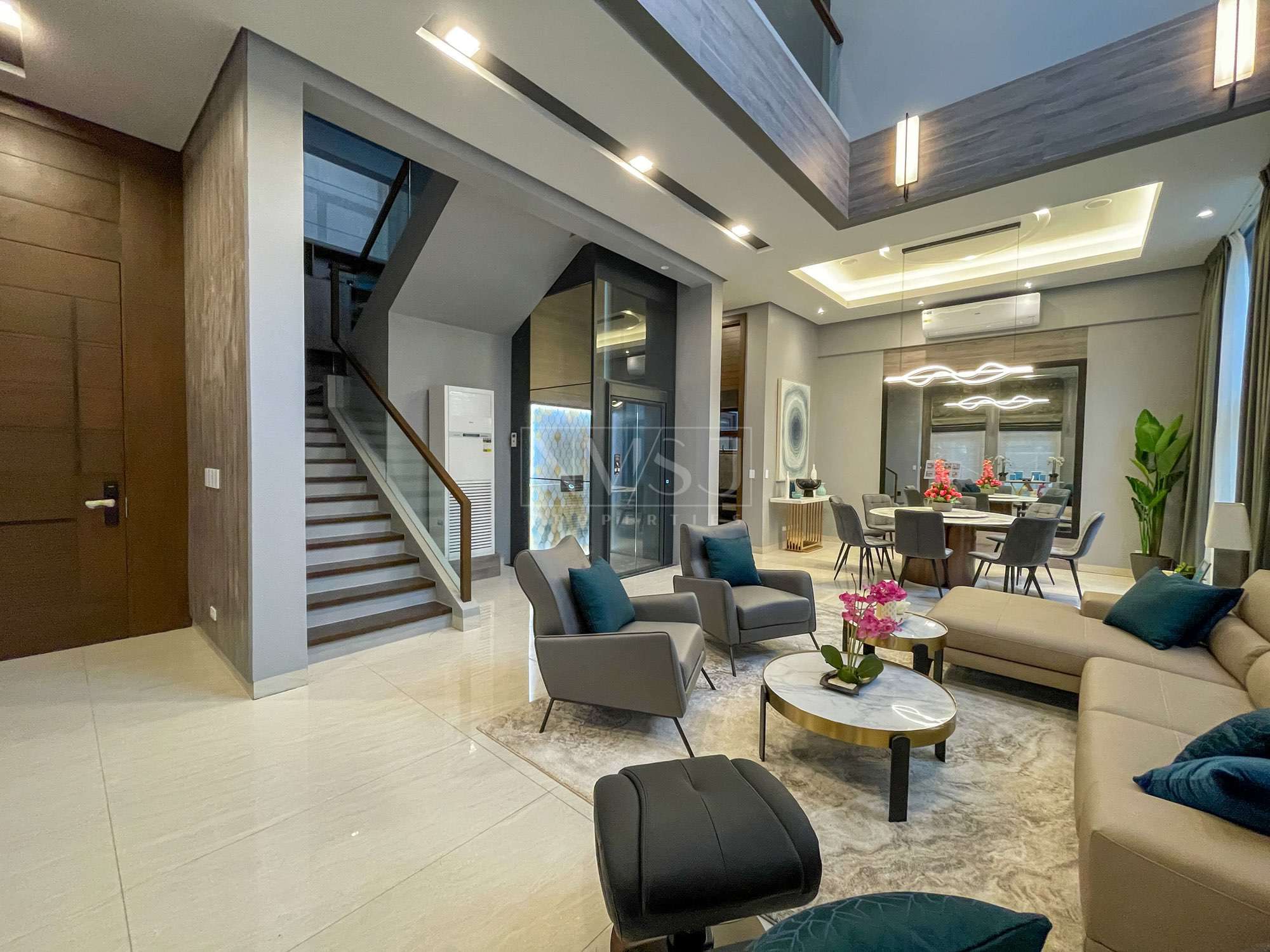 GROUND FLOOR: 4-9 Parking slots, Porch, Foyer, Living Area, Dining Area, Home lift, Main Kitchen, Daily Kitchen, Maidsroom, T&B, Laundry Area, Yard & Garden (Varies per Unit)